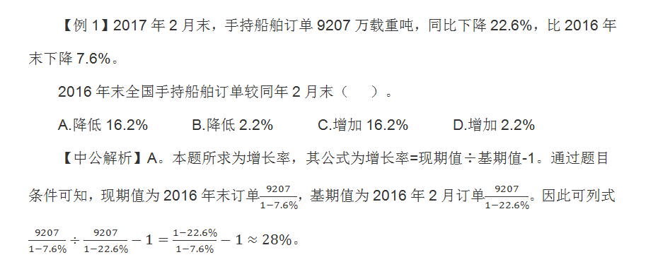 往年的题目中,出题人经常会考察基期时间甚至隔年基期时间,而2018年国家公务员考试中,出现了增长的多公式结合题型,会考察多个时间点之间的关系,这需要同学们在审题和找数据时时尤为注意。