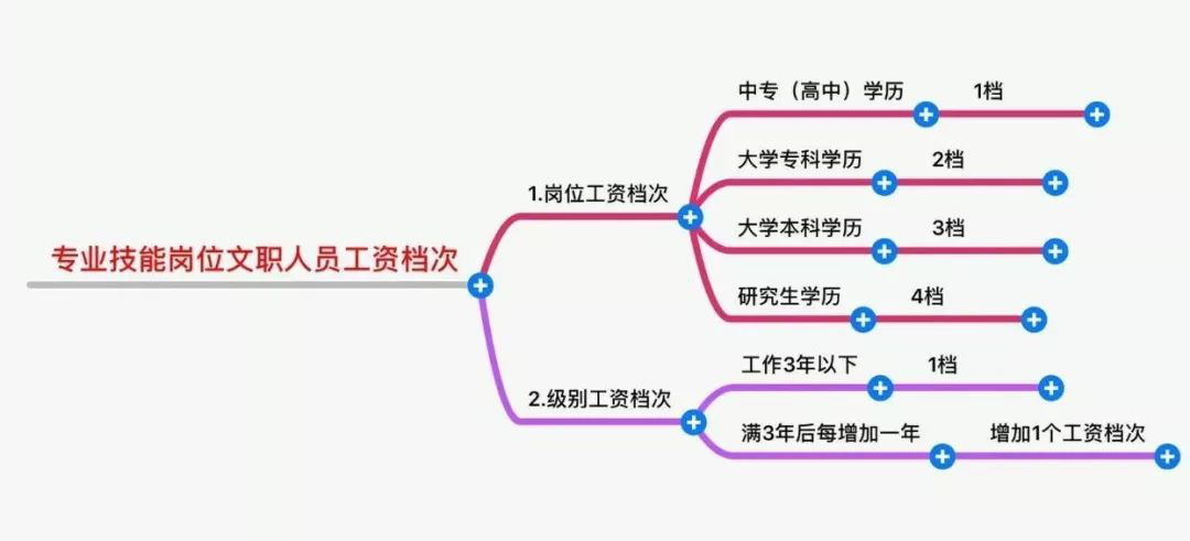(3)工资档次的确定和调整。新聘专业技能岗位文职人员的岗位工资档次,中专(高中)学历的确定为1档,大学专科学历的确定为2档,大学本科学历的确定为3档,研究生学历的确定为4档。