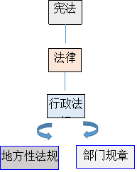 宪法至上、法律高于法规、法规高于规章、行政法规高于地方性法规。